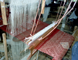 2. LOOMS OF SOUTHEAST ASIA - Travel with Deb to Southeast Asia and learn about the simple looms used to create intricate patterns. We'll compare looms in Laos, Thailand, Cambodia and Burma. We'll also look at how reeds are handmade to order and learn about making heddles by hand. Deb will have sample textiles for you to touch and look at. This program is the result of 2000 and 2002 Research Expedition Program with the University of California – Davis and independent trips in 2001, 2004, 2005 and 2006 to Laos, Thailand, Cambodia and Burma.